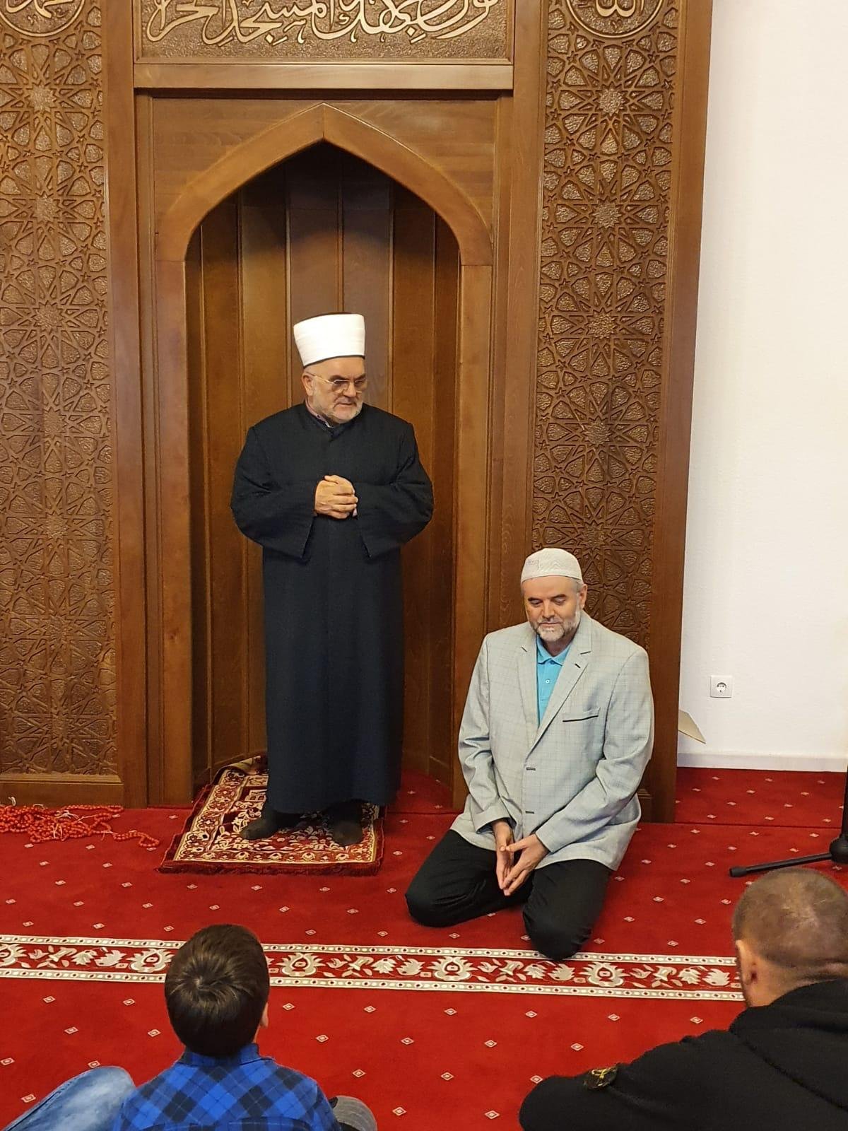 HomeAktuelnostiMuftija Dudić posjetio Delimeđe i Crnoču 10. Maja 2020. Aktuelnosti 1154 U subotu 09.05.2020. godine predsjednik Mešihata IZ-e u Srbiji muftija dr. Mevlud ef. Dudić sa saradnicima posjetio je džemat Delimeđe.Tom prilikom, vrijedni džematlije na čelu sa Hasim ef. Bilalovićem priredili su iftar u Islamskom centru.Nakon akšam namaza muftija Dudić je govorio o porukama Bedra.Istog dana predsjednik Mešihata posjetio je džemat Crnoču kod Novog Pazara. Nakon obavljene teravije obratio se prisutnima vazu nasihatom na temu “Znacaj Bedra u životu muslimana”.