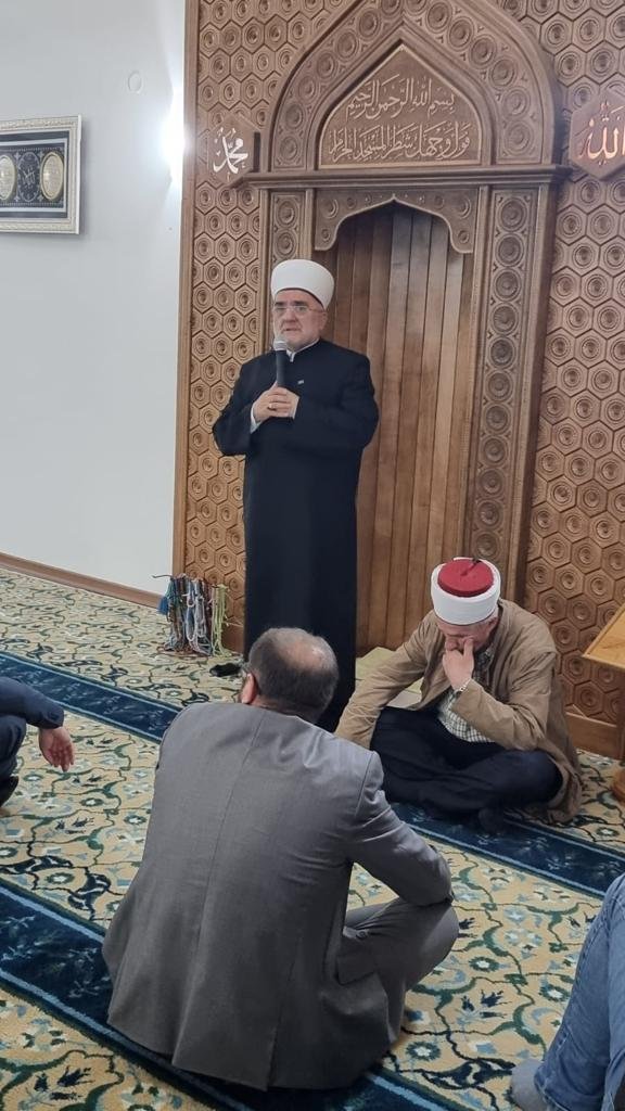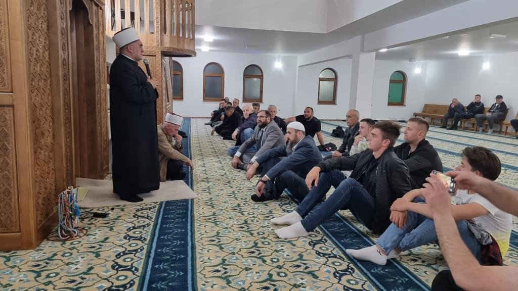 HomeAktuelnostiPredsjednik Mešihata posjetio Islamski centar Delimeđe 2. Maja 2021. Aktuelnosti 1580 U nedjelju 20. ramazana, 02.05.2021. godine, delegacija Mešihata Islamske zajednice predvođena predsjednikom, muftijom dr. Mevlud ef. Dudićem, posjetila je džemat u Delimeđu, Medžlis IZ-e Tutin. Tom prilikom, obratio se prisutnima govoreći o značaju preostalih deset dana mjeseca Ramazana sa posebnim akcentom na pojačani ibadet i zahvalnost Allahu dž.š. koji nam je omogućio da ranazanske ibadete obavljamo u otvorenim džamijama. U delegaciji su bili predsjednik Sabora dr. Enver ef. Gicić i muftija novosadski Nedžad ef. Hasanović.