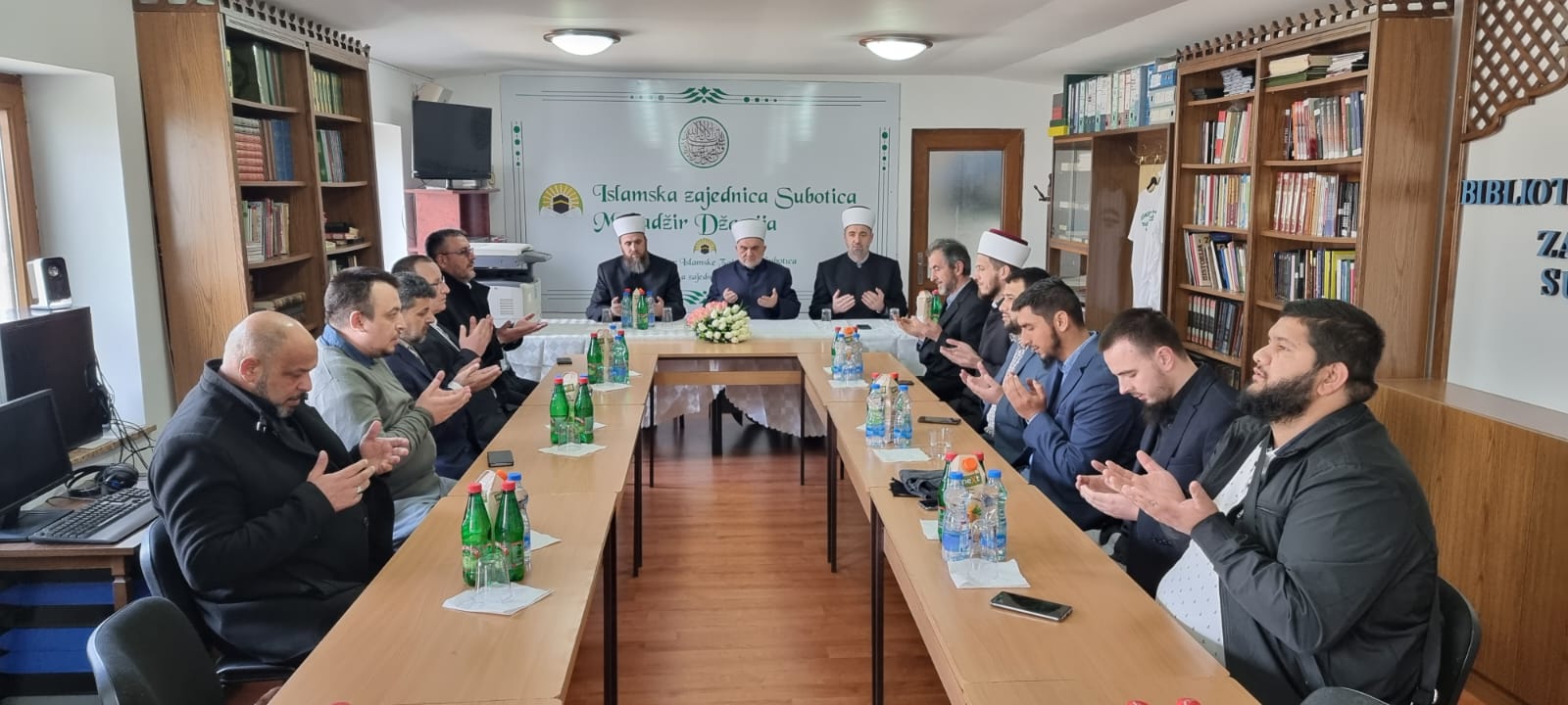 HomeAktuelnostiOdržano predramazansko savjetovanje u Subotici 17. Marta 2022. Aktuelnosti, Mešihat, Muftijstva, Subotica, Informativna služba 1688 U četvrtak 17. marta 2022. godine, u Medžlisu IZ-e Subotica održano je predramazansko savjetovanje kojem su prisustvovali predsjednik Mešihata Islamske zajednice u Srbiji muftija dr. Mevlud ef. Dudić, muftija beogradski dr. Rešad ef. Plojović, muftija novosadaki Nedžad ef. Hasanović, imami Muftijstva beogradskog i novosadskog, te predsjednici medžlisa iz pomenuta dva muftijstva. Prisutnima se obratio glavni muftija Dudić koji je govorio o ramazanskim aktivnostima gdje se posebno osvrnuo na pojačan rad imama u mjesecu posta. On je zahvalio imamima na radu u ovom dijelu države i izrazio im svaki vid podrške na njihovom časnom i odgovornom poslu te promociji Islamske zajednice. Predsjednik Mešihata je uručio hediju – odlazak na umru novosadakom glavnom imamu Fadil ef. Muratiju, a u povodu 40 godina njegovog rada u službi islama i muslimana. Prisutnim imamima su se prigodnim savjetima obratili i muftije beogradski i novosadski. Nakon proučene dove, delegacija Mešihata je obišla nove prostorije Medžlisa, poslije čega je obavljen zajednički namaz u subotičkoj Muhadžer džamiji.