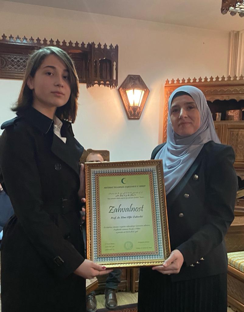 HomeAktuelnostiPredsjednik Mešihata sa kolektivom Reude 23. Marta 2022. Aktuelnosti 1452 U srijedu, 23.03.2022. godine, upriličen je susret predsjednika Mešihata Islamske zajednicr muftije dr. Mevlud ef. Dudića sa upravom i kolektivom Predškolske ustanove Reuda i Vildan. Susret je organiziran nakon nedavnih promjena u rukovodećim organima ove odgojno-obrazovne ustanove Islamske zajednice, kada je imenovan Upravni odbor i upravnica na period od dvije godine. Imajući u vidu da je nakon imenovanja prof. Aide Rašljanin za upravnika Reude, na osnovu njenog ličnog zahtjeva usljed neodložnih ličnih i porodičnih obaveza, Mešihat prihvatio njeno povlačenje sa čelne pozicije, uslijedilo je imenovanje prof. Elvire Mekić na mjesto v.d. upravnice Reude. Predsjednik Mešihata je naglasio da je Predškolska ustanova Reuda važna odgojno-obrazovna ustanova Islamake zajednice, da je prešla važan razvojni put i ostvarila velike rezultate, te da se uspješan rad mora nastaviti u budućnosti i da je potrebno uložiti dodatne napore u cilju ostvarivanja boljih rezultata. Susretu su pored članova kolektiva Reude prisustvovali i muftija dr. Rešad ef. Plojović – potpredsjednik Mešihata, dr. Admir Muratović – direktor Uprave za obrazovanje, prof. Mersad Curić – predsjednik Upravnog odbora, prof. Elvira Mekić – v.d. upravnice Revde i Harun Kačapor – sekretar. Na sastanaku je uručeno priznanje Mešihata dr. Elmi Elfić Zukorlić za doprinos razvoju i uspješno rukovođenje Upravnim odborom Reude u periodu od 2010-2022. godine.