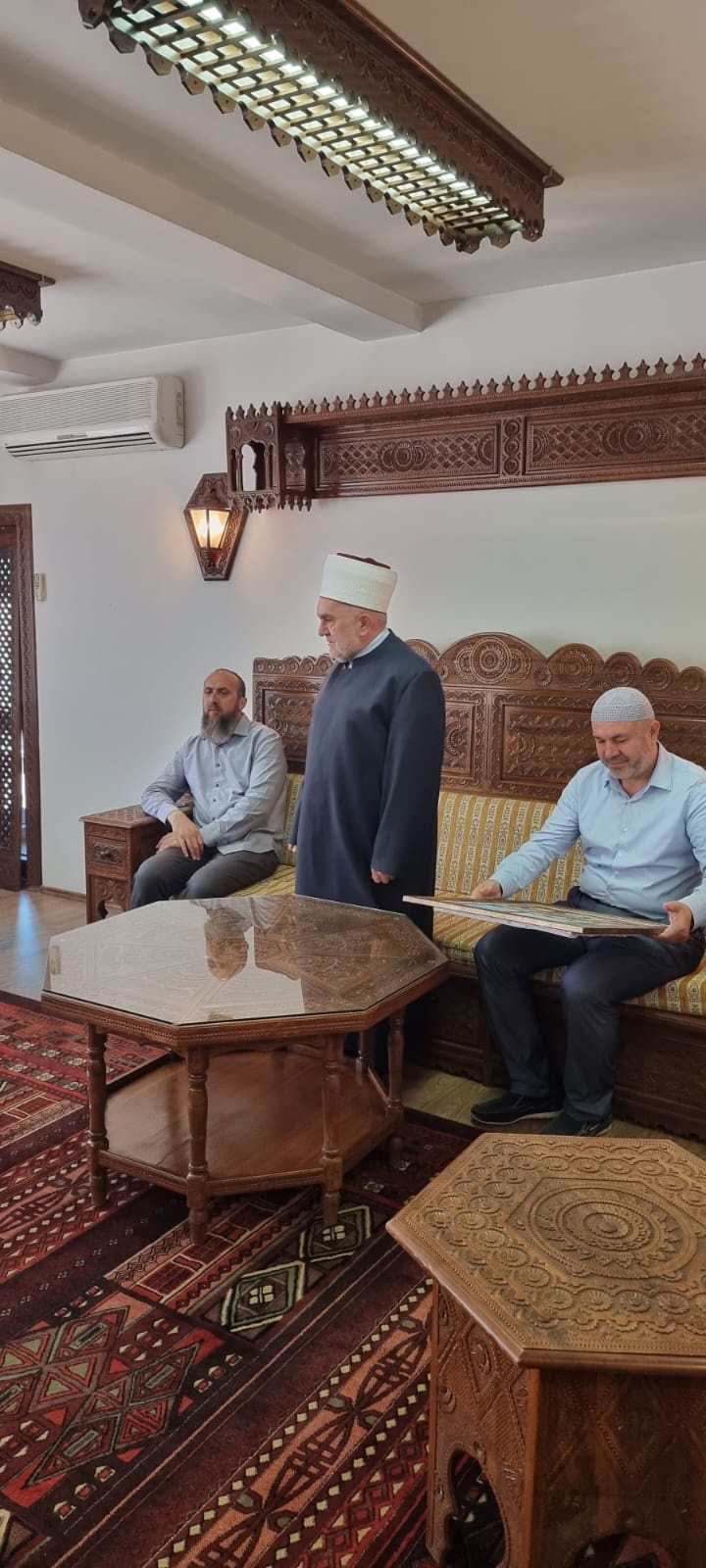 HomeAktuelnostiPredsjednik Mešihata primio džematlijeTravničkog medžlisa 19. Juna 2022. Aktuelnosti 926 U nedjelju 19.06.2022. godine predsjednik Mešihata Islamske muftija dr. Mevlud ef. Dudić primio je grupu od 80 džematlija Medžlisa IZ-e Travnik na čelu sa imamom Aljom ef. Cikotićem. Travnički vjernici se nalaze u trodnevnoj posjeti Islamskoj zajednici u okviru koje su posjetili Sjenički i Novopazarski medžlis, Mešihat, mezar rah. muftije Muamer ef. Zukorlića, a u planu imaju obilazak džemata na području Muftijstva beogradskog i novosadskog gdje će im domaćin biti muftija novosadski hfz. Nedžad ef. Hasanović.