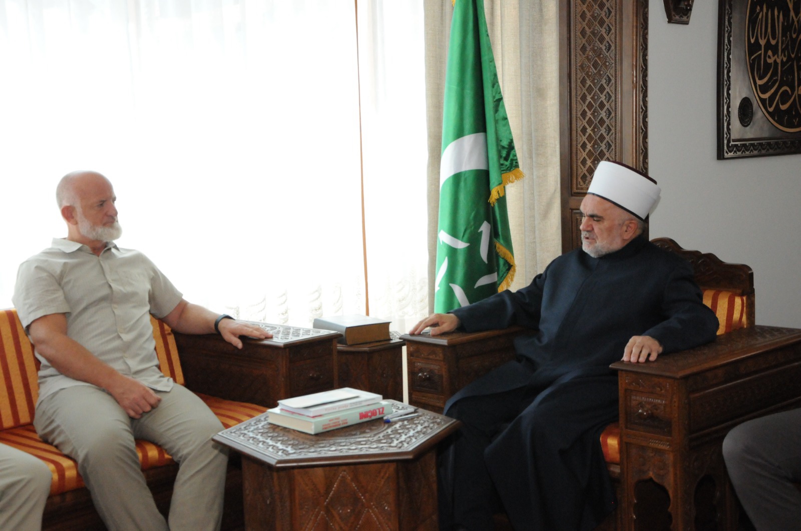 HomeAktuelnostiMuftija Dudić primio predsjednika Islamskog centra u Njujorku 19. Jula 2022. Aktuelnosti 715 Dana 19.07.2022. godine, predsjednik Mešihata Islamske zajednice muftija dr. Mevlud ef. Dudić primio je predsjednika Islamske zajednice „Plav-Gusinje“ u Njujorku h. Smaila Srdanovića u pratnji blagajnika h. Ragipa Čekića.Tom prilikom, muftija Dudić zahvalio je džematu Islamskog centra u Njujorku koji godinama pomaže projekte Mešihata, dok je predsjednik Srdanović istakao zadovoljstvo što su u prilici pomagati Islamsku zajednicu, te da će i u narednom periodu ulagati u projekte od koristi za muslimane Sandžaka odakle potiču.