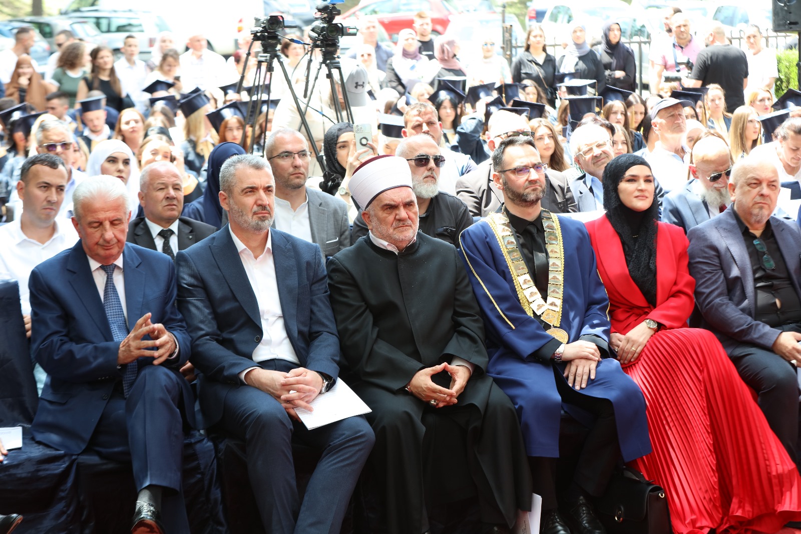 HomeAktuelnostiInformativna službaObilježena 22. godišnjica osnivanja Univerziteta u Novom Pazaru 30. Maja 2024. Informativna služba 505 Svečanom akademijom, 30.05.2024. godine, obilježena je 22. godišnjica od osnivanja Univerziteta u Novom Pazaru. Svečanu akademiju otvorila je Merjem Zukorlić izvedbom univerzitetske himne. Kao i prethodnih godina i ovom prilikom upriličena je svečana dodjela diploma svršenicima osnovnih i master studija. Nakon filma sa retrospektivnim događajima u akademskoj 2023/24. prisutnima se obratio rektor UNINP-a, prof. dr. Suad Bećirović, poručivši da svršenici preuzimanjem diploma, zapravo, predstavljaju početak nove faze u životima svršenika. Treća godina kako značaj i veličinu rahmetli akademika muftijie Muamera Zukorlića mjerimo u njegovom odusustvu. Malo je onih koji su rekli više o obrazovanju od njega, a snagu njegovim riječima dala su djela. U to ime studentica Nejla Koničanin pročitala je odlomak iz djela “Academia” akademika Zukorlića, nakon čega je uslijedila dodjela jubilarnih nagrada uposlenicima Univerziteta u Novom Pazaru. Ova visokoobrazovna ustanova njeguje prave vrijednosti. Zlatne plakete najboljim studentima uručio je predsjednik Savjeta Univerziteta dr. Rešad ef. Plojović. U ime zlatnih studenata obratila se Ajla Idrizović. Izaslanik ministarke prosvjete Republike Srbije prof. dr. Janko Samardžić čestitao je Dan Univerziteta, poručivši da ovaj univerzitet, pored osnovne djelatnosti u oblasti visokog obrazovanja, bavi se i obrazovanjem odraslih, istraživanjem i razvojem i istraživačkom delatnošću. Izaslanik predsjednika Republike Srbije Milorad Veljović kazao je da je Univerzitet u Novom Pazaru bitan za cijeli Sandžak. Na kraju prisutnima se obratio predsjednik Mešihata Islamske zajednice muftija dr. Mevlud ef. Dudić. Poručio je da ono što je nekada bio san danas je java. “Sanjali smo ovaj današnji dan, bez obzira kroz šta smo prošli i prolazili, a vidite kada ste uspravni i ustrajni šta dočekate. Znate, nizvodno svako može da pliva, ali uzvodno samo najbolji. Mi smo od samog početka u valovitoj rijeci uzvodno plivali. Dakle, budimo ponosni i sretni i svugdje to ističite, jer i ja se ponosim da doktorsku diplomu nosim sa Univerziteta u Novom Pazaru i mnogi drugi koji su ovdje prisutni. Svim maturantima poručujem da je prva i sigurna adresa Univerzitet u Novom Pazaru”, zaključio je muftija Dudić. Svečanosti su prisustvovale visoke zvanice iz akademskog, kulturnog, vjerskog i političkog života.