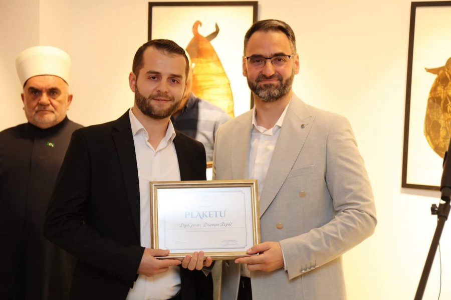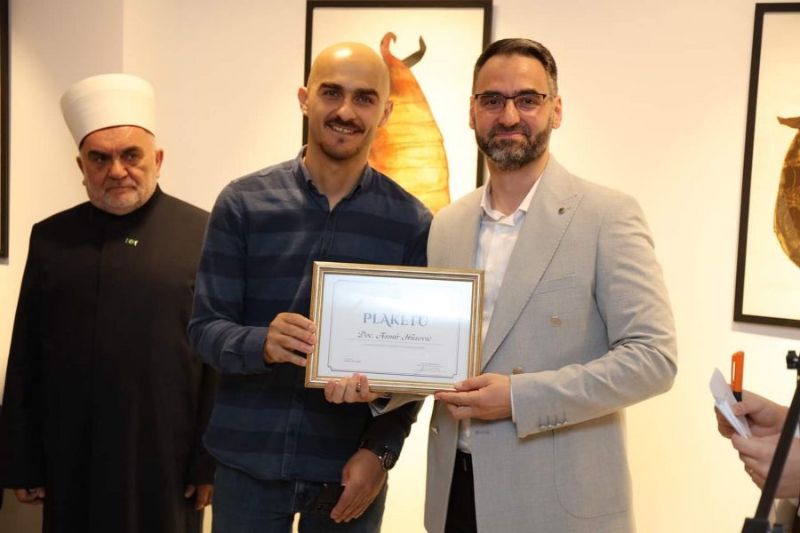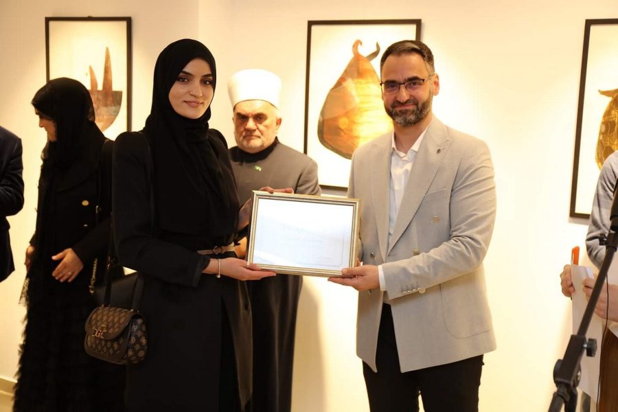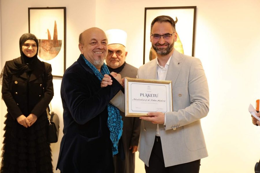 HomeAktuelnostiPredsjednik Mešihata otvorio galeriju na Internacionalnom univerzitetu 15. Oktobra 2024. Aktuelnosti, Mešihat, Ustanove i službe, Informativna služba 358 Dana 14.10.2024. godine na Univerzitetu u Novom Pazaru otvorena je umjetnička galerija. Univerzitetska galerija će biti središte kreativnosti i umjetničkog izražavanja u Novom Pazaru, Sandžaku i šire. Ova galerija spaja tradiciju i savremeni umjetnički izraz, stvarajući platformu za saradnju i inspiraciju između lokalnih umjetnika, studenata i profesora. Galerija je otvorena izložbom grafika akademika Fehima Huskovića pod nazivom „Bahčaluk“, kojom je kroz umjetnički izraz prikazan težak život ljudi sa naših prostora. U svom obraćanju prisutnima prof. Asmir Husović istakao je važnost postojanja ovakve i sličnih galerija. Rektor dr. Suad Bećirović zahvalio se svima koji su dali svoj doprinos da galerija ugleda svjetlost dana, a naročito Mešihatu za obezbijeđene donacije u cilju njenog opremanja. Mr. Medžid Fakić govorio je o liku i djelu akademika Fehima Huskovića. Prorektor za kulturu akademik Fehim Husković, sretan i ponosan što je baš njegovom izložbom svečano otvorena galerija, istakao važnost umjetnosti u današnjem vremenu. Poseban gost ove večeri bio je predsjednik Mešihata Islamske zajednice muftija dr. Mevlud ef. Dudić. Ovo je pokazatelj da će budućnost ovog naroda biti bolja nego prošlost, naveo je on. “Na početku akademske godine domaćini su ovo večeras priredili i okupili ljude koji imaju svijest o kulturi, a posebno o umjetnosti. Ovo je pokazatelj da će budućnost ovog naroda biti bolja nego prošlost, jer ima jedna arapska poslovica koja glasi: – Sanjajte, jer sve što je nekada bio san danas je java”, kazao je muftija Dudić, koji je ujedno najavio narednog mjeseca i otvaranje amfitetara na Univerzitetu, prijeko potrebog ovoj visokoškolskoj instituciji. Plakate u znak zahvale za izuzetan doprinos dodijeljene su Mešihatu Islamske zajednice, Džemailu Demiću, akademiku Fehimu Huskoviću, prof. Asmiru Husoviću, arhitektici Džemili Eminović i Dženanu Pepiću na njihovom izuzetnom doprinosu ovom projektu. Galerija će biti otvorena svakog radnog dana od 9 do 14 h gdje će se moći pogledati djela akademika Huskovića.