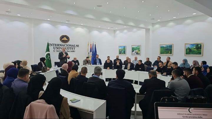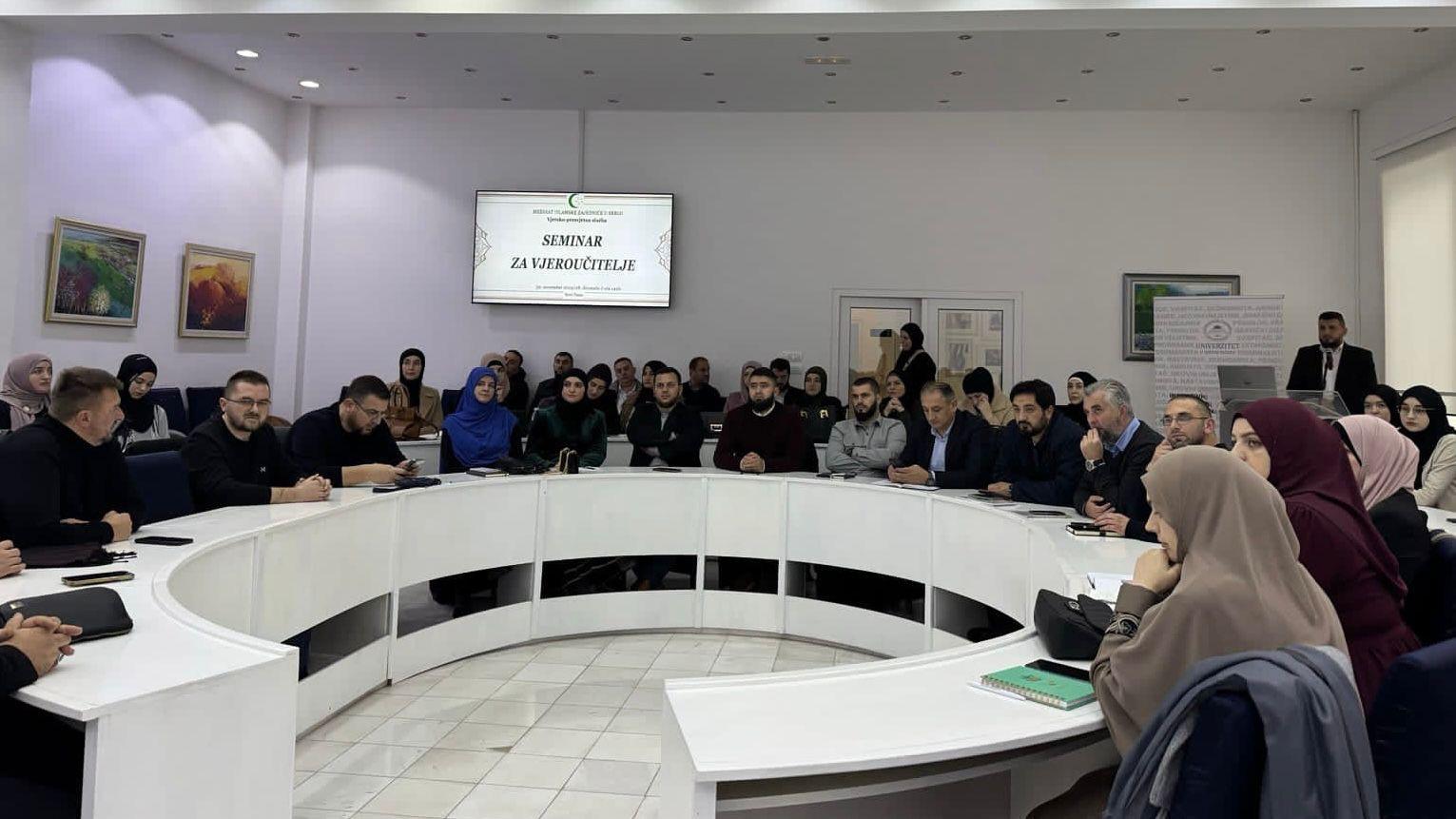 HomeAktuelnostiOdržan seminar za vjeroučitelje 2. Decembra 2024. Aktuelnosti, Mešihat, Predsjednik Mešihata, Ustanove i službe, Informativna služba, Udruženje vjeroučitelja 1044 U subotu, 30.11.2024. godine, u organizaciji Vjersko-prosvjetne službe Mešihata, u okrugloj sali Univerziteta u Novom Pazaru, upriličen je seminar za vjeroučitelje Islamske zajednice u Srbiji, koji nastavu islamske vjeronauke drže u osnovnim u srednjim školama na prostoru sandžačkih opština: Novog Pazara, Sjenice, Tutina, Prijepolja, Priboja, Brodareva i Nove Varoši, a koji su se, uprkos snježnim padavinama, skoro stoprocentno odazvali pozivu. Uvodne riječi o važnosti i cilju seminara uputio je rukovodilac Vjersko-prosvjetne službe, koja prati rad vjeroučitelja, muftija dr. Rešad ef. Plojović, a potom se prisutnima obratio predsjednik Mešihata muftija dr. Mevlud ef. Dudić, koji je ukazao na važnost skupa i nužnost kontinuiranog unapređivanja projekta islamske vjeronauke. Otvaranju seminara prisustvovao je i rektor Univerziteta u Novom Pazaru dr. Suad Bećirović, koji je poselamio prisutne i zaželio im uspješan rad. Na seminaru, kroz dvije sesije, izložena su četiri referata. Muftija dr. Rešad ef. Plojović govorio je o aktuelnom stanju po pitanju islamske vjeronauke i izazovima sa kojima se Islamska zajednica suočavala u periodu od 23 godine od vraćanja vjerske nastave u školski sistem R. Srbije. Dr. Nezir Halilović, šef Odjela za vjeronauku pri Upravi za obrazovanje Rijaseta IZ-e u BiH, govorio je o metodama postizanja zadovoljstva kod učenika. Naslov referata kojeg je prezentirala prof. dr. Mirsada Zukorlić bio je “Vjerska nastava kao interaktivni proces”. Tema izlaganja dr. Harun ef. Eminagića bila je “Lik i uloga vjeroučitelja u odgojno-obrazovnom procesu”. Nakon izlaganja u obje sesije prisutni vjeroučitelji su imali mogućnost učešća kroz iznošenje svojih mišljenja, postavljanje pitanja ili iniciranja konkretnih aktivnosti koje će doprinijeti unapređenju ovog važnog projekta Islamske zajednice. Vjeroučitelji, kao ni domaćini, nisu krili svoje zadovljstvo postignutim efektima seminara, tako da je zaključeno da se nastavi sa održavanjem sličnih susreta, te da Islamska zajednica dodatno uloži napora u cilju unapređenja statusa vjerske nastave i vjeroučitelja u državnim osnovnim i srednjim školama.
