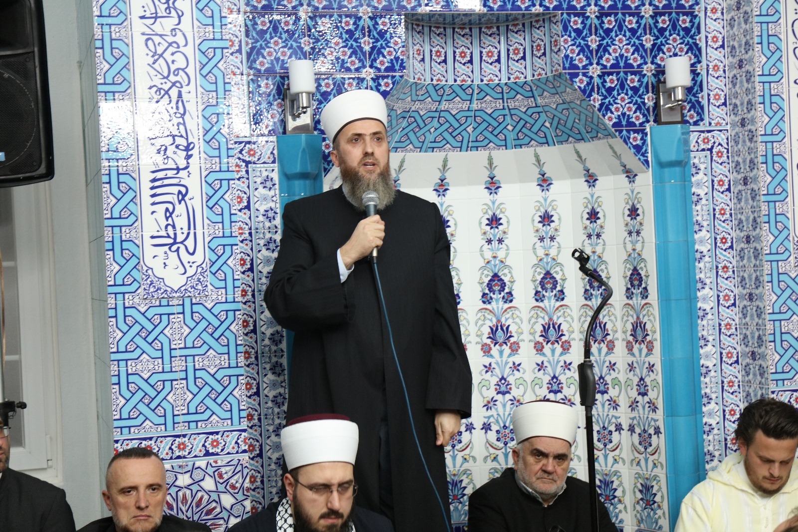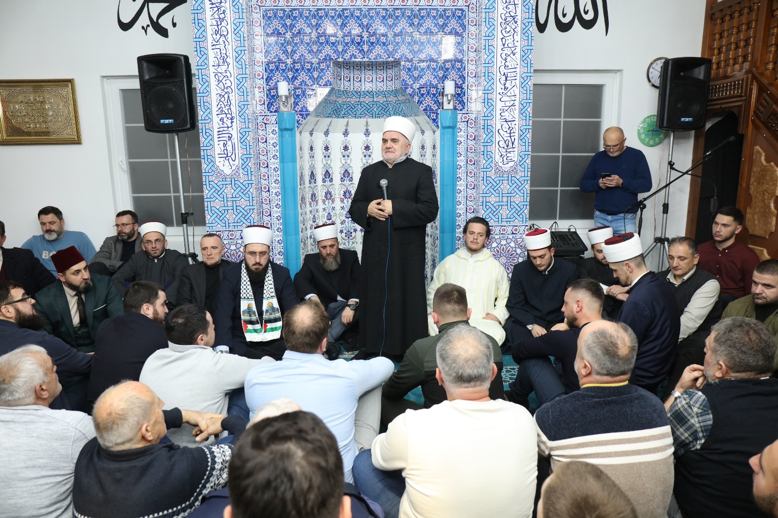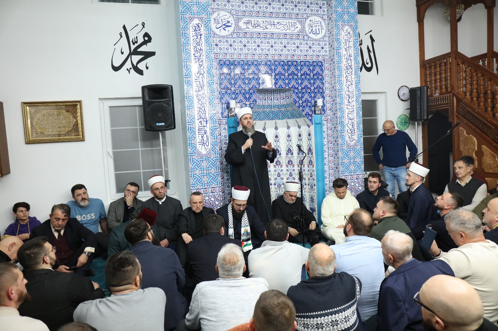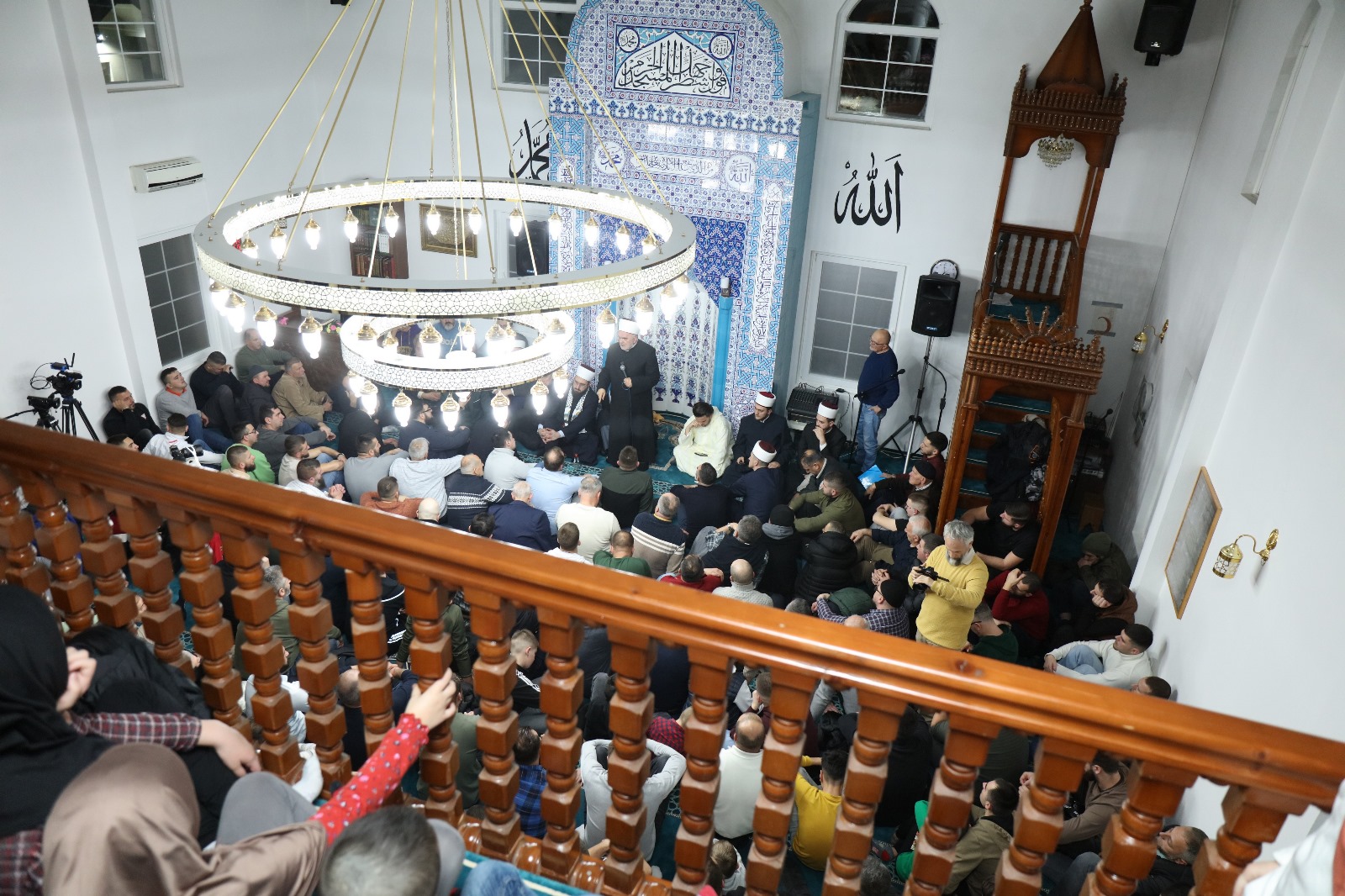 HomeMuftijstvaMuftijstvo sandžačkoBrodarevoOdržana Večer Kur'ana u Brodarevu 30. Decembra 2024. Brodarevo, Aktuelnosti, Mešihat, Muftijstva, Muftijstvo sandžačko, Predsjednik Mešihata, Informativna služba 1900 Nedjelja 29.12.2024. godine, nakon jacije namaza, bila je posebna noć u brodarevskoj Malkan Čuaš džamiji, kada je upriličena Večer Kur’ana i ilahija. Džamijski prostor bio je pretijesan da primi sve vjernike i vjernice koji su došli svoje duše napojiti Allahovim govorom. Na samom početku, predsjednik Medžlisa IZ-e Brodarevo Sanel ef. Bjelak poželio je dobrodošlicu prisutnima, uz riječi da je ponosan i radostan što se na ovako veličanstven način okončava kalendarska godina. Svojim milozvučnim glasovima večer su kur'anskim ajetima i ilahijama oplemenili poznati karije naših prostora: hfz. Egzon Ibrahimi sa Kosova, Ibrahim Bilčević iz Bosne i Hercegovine, te kurra hfz. Sabahudin ef. Jerebičanin, Ammar ef. Nuhambašić i Ensar ef. Latifović iz Sandžaka. Prisutnima se obratio muftija novosadski hfz. Nedžad ef. Hasanović istakavši da su srca onih koji su večeras u Malkan Čauš džamiji na sigurnom. „Dok se drugi opijaju na nekoj drugoj strani, mi večeras Gospodara veličamo Njegovim govorim. Ima li šta ljepše? Srca se napajaju Kur’anom, a srca naše djece koja večeras slušaju učenje naših karija, na sigurnom su. Omladino, uzmite pouku od naših karija kako lijepo uče Kur’an. Roditelji, dovite Allahu da i vaša djeca sutra ovako lijepo uče Kur’an. Roditeljska dova čini čuda, pa molim Allaha da iz ovog džemata niknu hafizi Kur’ana“, istakao je muftija Hasanović. Predsjednik Mešihata IZ-e u Srbiji muftija dr. Mevlud ef. Dudić obratio se prisutnima. Ne postoji bolji poklon ljudskim srcima i napitak ljudskim dušama od Allahovog govora, istakao je muftija Dudić. „Večeras smo ovdje jer čvrsto vjerujemo da je Kur’an Allahov govor, te da je objavljen posljednjem Allahovom poslaniku Muhammedu s.a.v.s. Ovdje smo jer je Kur’an Allahovo uže, jer je uputa za sve ljude. Ovdje smo večeras jer je Kur’an lijek za duše, podsjetnik, rastavljač istine od neistine. Na ovim prostorima Kur’an je to uvijek bio – nekad jače, nekad slabije, ali zahvalni smo našim precima koji nisu dozvolili da se žeravica Kur’ana ugasi, te se i njih večeras sjećamo dovom jer nisu dozvolili da Allahovog govora nestane, pa su ovo danas tragovi i njihovog života. Večeras napajamo naše duše. One čeznu za Kur’anom. Ničim našu dijasporu niste mogli peškešiti bolje od ovog napitka – kur’anskog napitka. Dva je mjeseca do Ramazana, pa se večeras na ovaj način pripremamo za njega. Kako je Kur’an rastavljač istine od neistine, budimo na pravom, a nikako na krivom putu. Neka u našim srcima stanuje istina. Oni koji žive sa Kur’anom berićet su za okolinu, za porodicu, za komšije. Onaj u čijem je srcu Kur’an u njemu je ljubav, u njemu je selam. Ova zajednica danas ima svoje karije, hafize i kurra hafize, svoj obrazovni sistem. Zato je i napadnuta 2007. godine, ali neka znate – bolja je i podjela nego truhlo jedinstvo. Nikada niko neće sa strane uređivati Islamsku zajednicu. Dalje ruke od nje svi koji bi da se miješaju u njen rad i uređenje. Nismo mi slabašni. Čuvat ćemo čast ahmedije i džube. Radit ćemo za dobro svog naroda i svih sa kojima živimo“, kazao je predsjednik Mešihata.