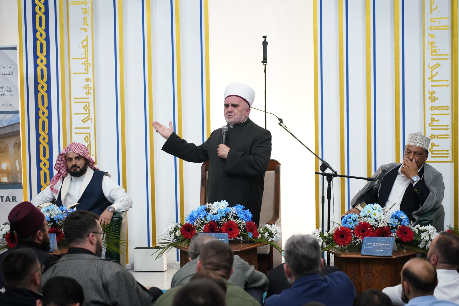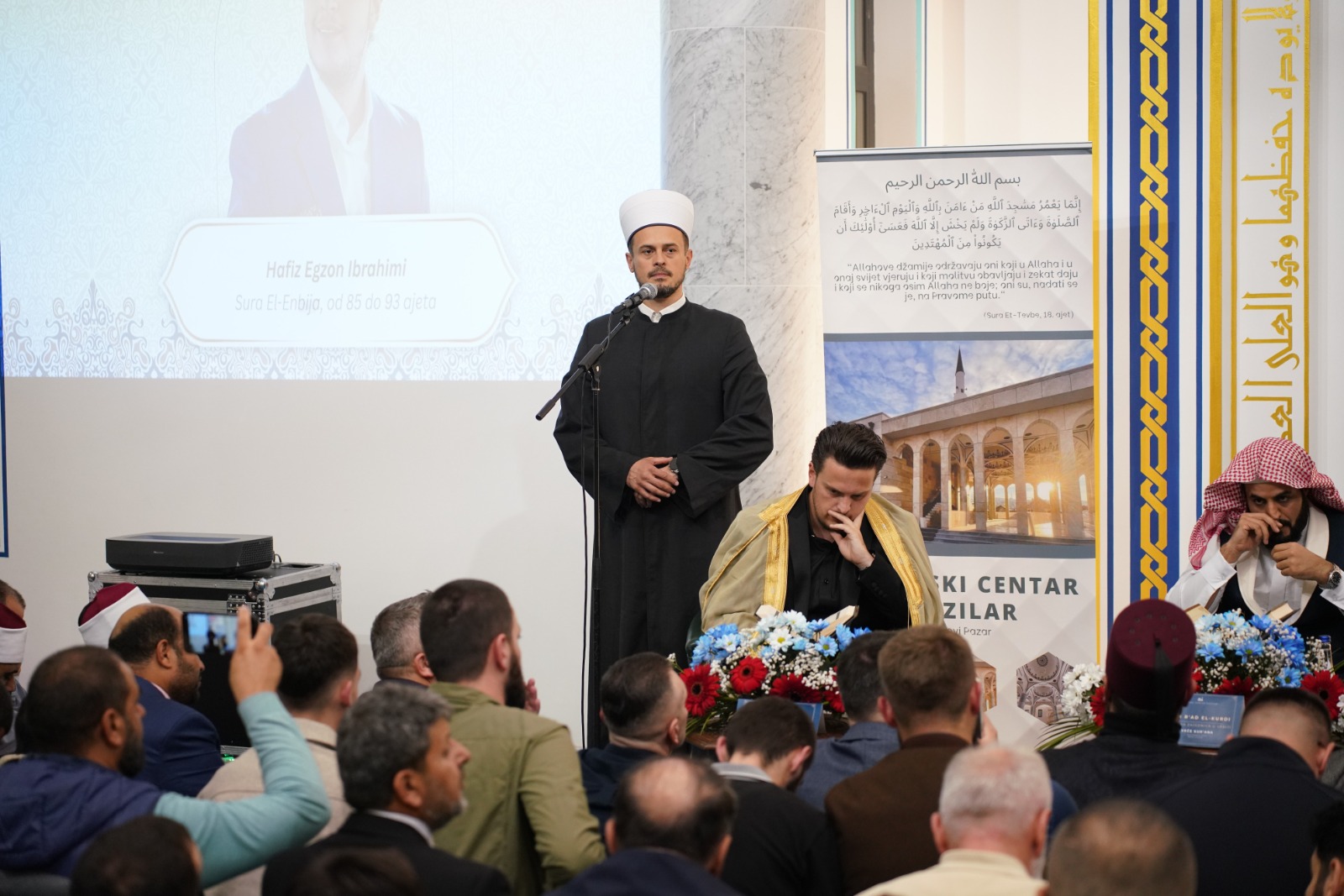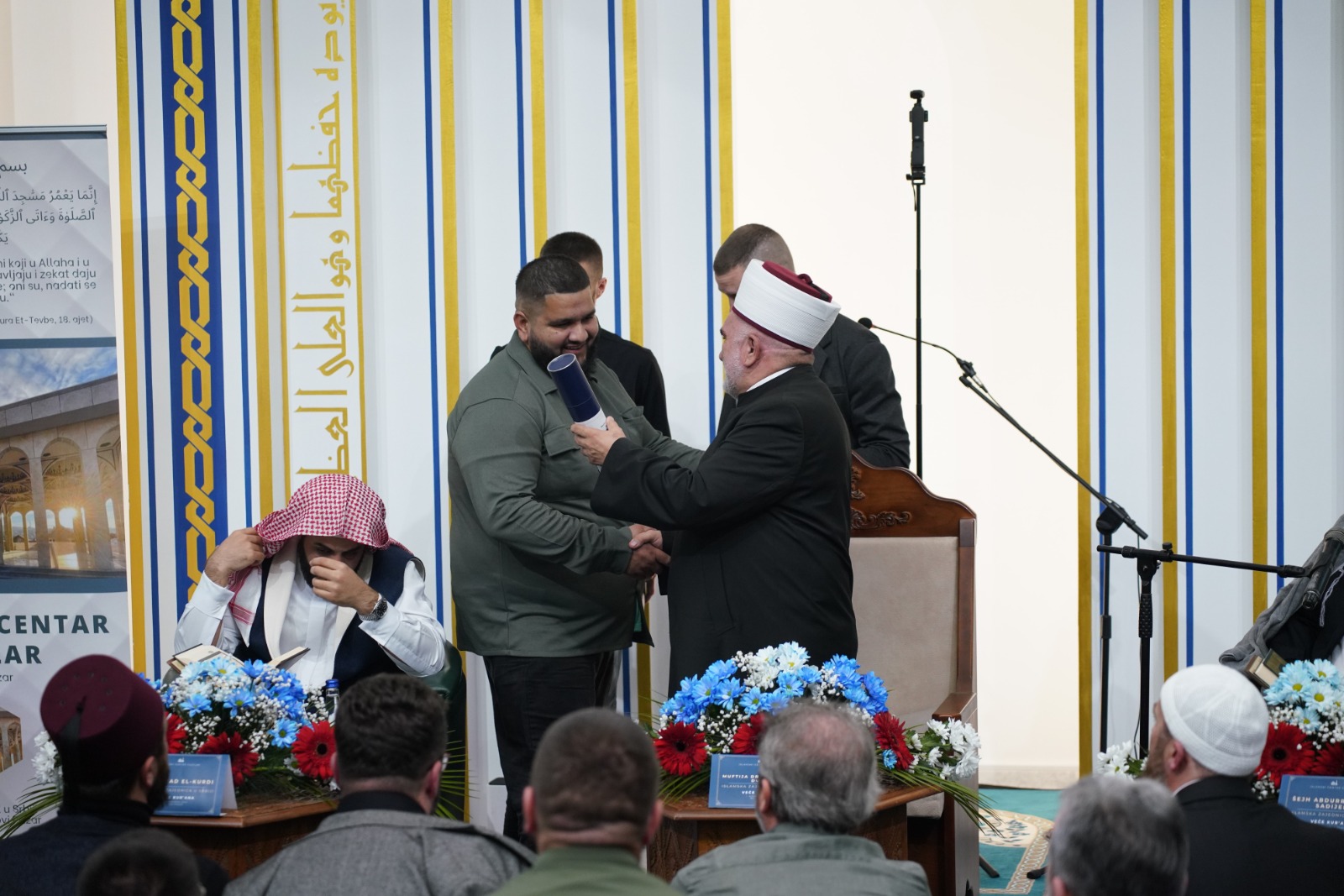 HomeAktuelnostiNesvakidašnja Večer Kur’ana u IC Gazilar 1. Novembra 2025. Aktuelnosti 329 Pod pokroviteljstvom Mešihata Islamske zajednice, a u organizaciji Medžlisa IZ-e Novi Pazar, 01.11.2025. godine, u prepunoj džamiji Islamskog centra Gazilar u Novom Pazaru, održana je tradicionalna Večer Kur’ana. Skup je otpočeo ezanom za jaciju, kojeg su naizmjenično proučili hafizi Egzon Ibrahimi i Yahya Yildizhan, dok je namaz predvodio šejh Ra’d El-Kurdi, nakon čega se prisutnima u svojstvu domaćina emotivnim riječima obratio imam Islamskog centra Gazilar, hfz. Irfan ef. Malić. Poslije namaza, prisutni su imali priliku uživati u učenju Kur’ana svjetski poznatih karija – hafiza Egzona Ibrahimija sa Kosova, kurra hafiza Yahye Yildizhana iz Turske, šejha Ra’ada El-Kurdija iz Iraka i šejha Abdurrahmana Sadijena iz Južnoafričke Republike. Programu je prisustvovala i delegacija Islamske zajednice, na čelu s predsjednikom Mešihata, muftijom sandžačkim dr. Mevlud ef. Dudićem, koji se obratio prisutnima, ističući značaj ovakvih okupljanja u jačanju vjere, zajedništva i ljubavi prema Kur’anu. – Svi vi ste večeras došli ovdje ste s razlogom – da još jednom posvjedočite da volite Allahov govor i da je vaš život u duhu Božijih načela. Ajet koji sam proučio: „Pravi su vjernici samo oni čija se srca strahom ispune kad se Allah spomene, a kada im se riječi Njegove kazuju, vjerovanje im povećaju i samo se na Gospodara svoga oslanjaju“ (El-Enfal, 2) podsjeća nas da su iskreni vjernici oni čija srca zatrepere kada se Allahovo ime spomene. Mi smo večeras ovdje da testiramo svoje duše, svoja srca – šta se dešava sa njima kada se Allahovo ime spomene. Muminsko srce ne može da ne zatreperi kada se Allah dž.š. spomene, a srce munafika nikakvu promjenu ne doživljava. Muminsko srce doživljava ljepotu, a za srce munafika – makar i klanjao, postio, učio Kur’an, nosila hidžab – ništa to ne predstavlja. Iman se uvećava kada se slušaju kur’anski ajeti. Ovdje smo večeras da uživamo u ljepoti učenja Kur’ana, slušajući ove karije, koji su došli iz daleka svijeta da nas počaste i ove godine. Ovo su naši projekti i ovo je naš program. Živimo u vremenima kada se mnogi napajaju sa društvenih mreža i kada svako može da kaže šta hoće i da oljaga koga hoće. Međutim, mi se napajamo ovdje na ovakav način. Za to su dobrim dijelom zaslužni naši donatori, kojima se ovom prilikom iskreno zahvaljujem uz dovu da im Gospodar mnogostruko nadoknadi.“ Brojni vjernici koji su ispunili IC Gazilar uživali su u nesvakidašnjem učenju, duhovnoj atmosferi i porukama koje su odzvanjale kroz svaku riječ Kur’ana. U okviru programa, dodijeljene su tri poklon umre koje su obezbijedili donatori: Aminu Salkoviću – džematliji IC Gazilar, Dinu Džinoviću – predsjedniku džematskog odbora u Somboru i Ramiz ef. Ćurkoliju – imamu džemata Makiš u Medžlisu IZ-e Beograd.