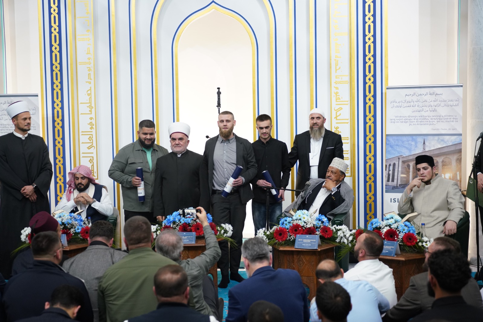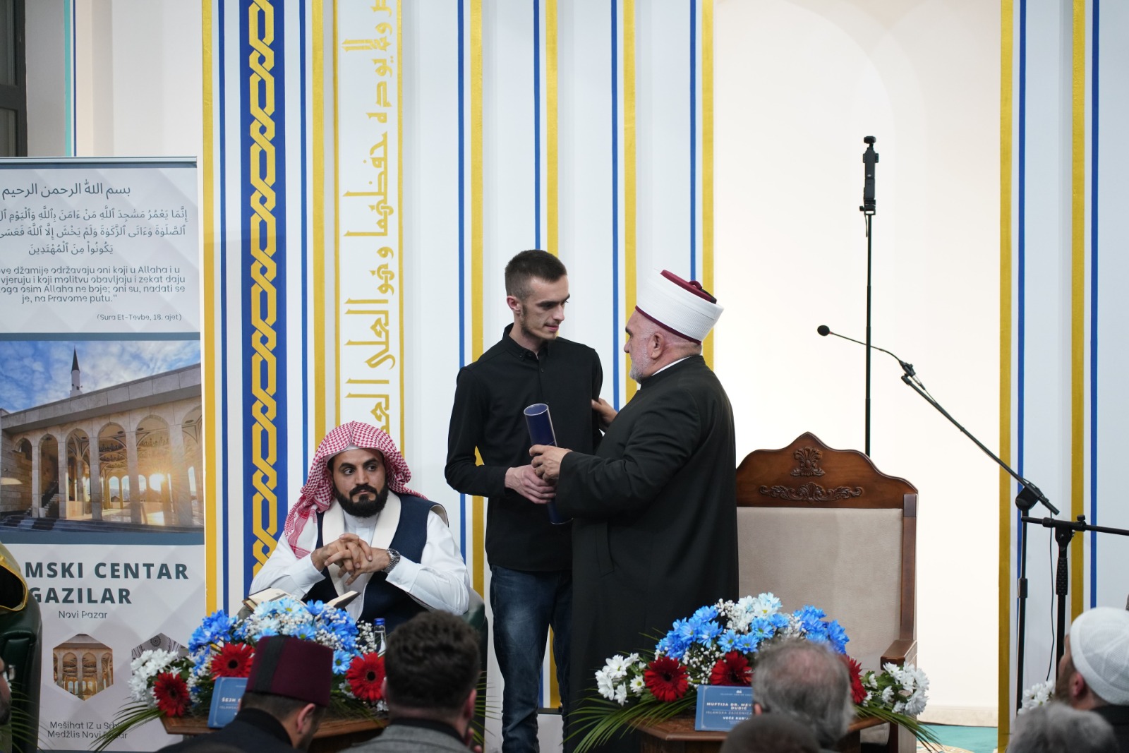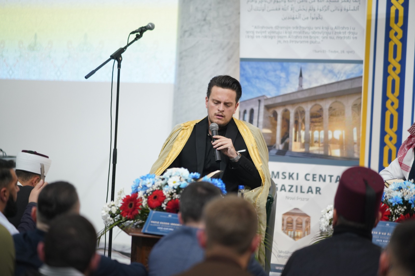 HomeAktuelnostiNesvakidašnja Večer Kur’ana u IC Gazilar 1. Novembra 2025. Aktuelnosti 329 Pod pokroviteljstvom Mešihata Islamske zajednice, a u organizaciji Medžlisa IZ-e Novi Pazar, 01.11.2025. godine, u prepunoj džamiji Islamskog centra Gazilar u Novom Pazaru, održana je tradicionalna Večer Kur’ana. Skup je otpočeo ezanom za jaciju, kojeg su naizmjenično proučili hafizi Egzon Ibrahimi i Yahya Yildizhan, dok je namaz predvodio šejh Ra’d El-Kurdi, nakon čega se prisutnima u svojstvu domaćina emotivnim riječima obratio imam Islamskog centra Gazilar, hfz. Irfan ef. Malić. Poslije namaza, prisutni su imali priliku uživati u učenju Kur’ana svjetski poznatih karija – hafiza Egzona Ibrahimija sa Kosova, kurra hafiza Yahye Yildizhana iz Turske, šejha Ra’ada El-Kurdija iz Iraka i šejha Abdurrahmana Sadijena iz Južnoafričke Republike. Programu je prisustvovala i delegacija Islamske zajednice, na čelu s predsjednikom Mešihata, muftijom sandžačkim dr. Mevlud ef. Dudićem, koji se obratio prisutnima, ističući značaj ovakvih okupljanja u jačanju vjere, zajedništva i ljubavi prema Kur’anu. – Svi vi ste večeras došli ovdje ste s razlogom – da još jednom posvjedočite da volite Allahov govor i da je vaš život u duhu Božijih načela. Ajet koji sam proučio: „Pravi su vjernici samo oni čija se srca strahom ispune kad se Allah spomene, a kada im se riječi Njegove kazuju, vjerovanje im povećaju i samo se na Gospodara svoga oslanjaju“ (El-Enfal, 2) podsjeća nas da su iskreni vjernici oni čija srca zatrepere kada se Allahovo ime spomene. Mi smo večeras ovdje da testiramo svoje duše, svoja srca – šta se dešava sa njima kada se Allahovo ime spomene. Muminsko srce ne može da ne zatreperi kada se Allah dž.š. spomene, a srce munafika nikakvu promjenu ne doživljava. Muminsko srce doživljava ljepotu, a za srce munafika – makar i klanjao, postio, učio Kur’an, nosila hidžab – ništa to ne predstavlja. Iman se uvećava kada se slušaju kur’anski ajeti. Ovdje smo večeras da uživamo u ljepoti učenja Kur’ana, slušajući ove karije, koji su došli iz daleka svijeta da nas počaste i ove godine. Ovo su naši projekti i ovo je naš program. Živimo u vremenima kada se mnogi napajaju sa društvenih mreža i kada svako može da kaže šta hoće i da oljaga koga hoće. Međutim, mi se napajamo ovdje na ovakav način. Za to su dobrim dijelom zaslužni naši donatori, kojima se ovom prilikom iskreno zahvaljujem uz dovu da im Gospodar mnogostruko nadoknadi.“ Brojni vjernici koji su ispunili IC Gazilar uživali su u nesvakidašnjem učenju, duhovnoj atmosferi i porukama koje su odzvanjale kroz svaku riječ Kur’ana. U okviru programa, dodijeljene su tri poklon umre koje su obezbijedili donatori: Aminu Salkoviću – džematliji IC Gazilar, Dinu Džinoviću – predsjedniku džematskog odbora u Somboru i Ramiz ef. Ćurkoliju – imamu džemata Makiš u Medžlisu IZ-e Beograd.