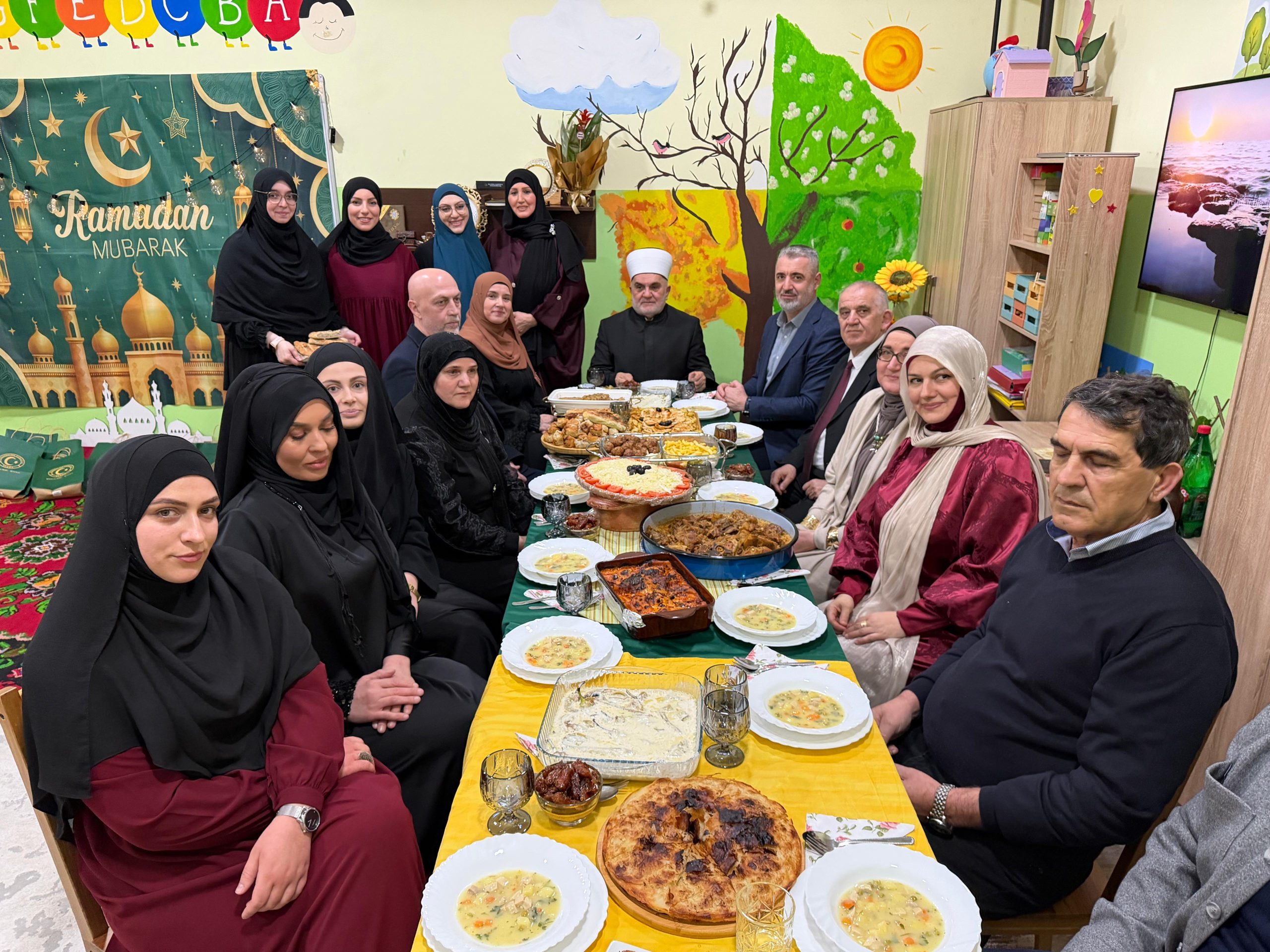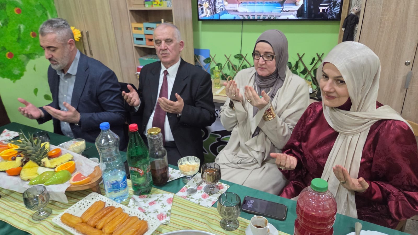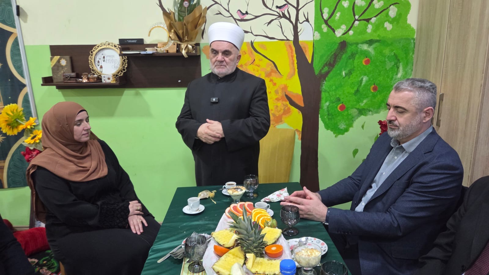HomeAktuelnostiMuftija Dudić na obilježavanju godišnjice Reude 24. Februara 2026. Aktuelnosti, Mešihat, Predsjednik Mešihata, Muftija sandžački, Informativna služba 602 Dana 24.02.2026. godine, u odjeljenju Predškolske ustanove Reuda na Musali obilježena je 28. godišnjica osnivanja ove odgojno-obrazovne ustanove Mešihata Islamske zajednice. Iftaru je prisustvovala delegacija predvođena predsjednikom Mešihata, muftijom sandžačkim dr. Mevlud ef. Dudićem, koju su činili njegov zamjenik dr. Rešad ef. Plojović i Zuhdija ef. Zukorlić. Prije iftara polaznici su u dvorištu, uz dobrodošlicu muftiji Dudiću, dočekali delegaciju, a zatim je u prelijepom ambijentu priređen iftar zajedno sa djecom iz vrtića, kojeg su upriličili roditelji polaznika. Tom prilikom, predsjednik Mešihata govorio je o svrsi osnivanja Reude, prisjećajući se rahmetli muftije Muamer ef. Zukorlića i njegove vizije. Istakao je da je za nas ovaj projekat bio i ostao misija, ne povodeći se finansijskim interesom. Cilj nam je bio nadomjestiti ono što je propušteno u našim porodicama uslijed zauzetosti roditelja i ubrzanog tempa života. Istakao je da su dječica naš ponos, gdje njihove odgajateljice ulažu ogroman napor i zaslužuju svaku pohvalu. Naglasio je da su one zamjena majkama naših polaznika i čestitao upravnici msc. Elviri Mekić, svim njenim saradnicama i osoblju Reude. Kazao je da je ovaj iftar za njega posebna počast jer je uživao sa polaznicima vrtića i cijelom ekipom koja je napravila nesvakidašnji ugođaj na Musali. U ime kolektiva, muftiji Dudiću uručen je poklon za podršku koju Mešihat u kontinuitetu pruža Predškolskoj ustanovi Reuda. Upravnica vrtića zahvalila se na posjeti i izrazila posebnu radost da se delegacija odazvala njihovom pozivu na iftar.
