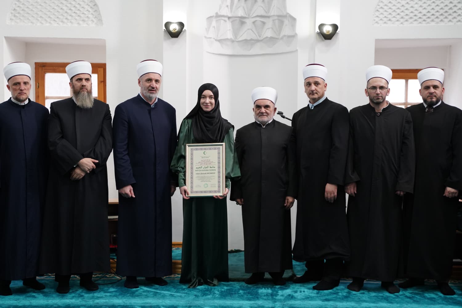 HomeAktuelnostiHafiska dova u Prijepolju za prvu hafizu Limske doline 28. Februara 2026. Aktuelnosti, Informativna služba 212 U Vakufskoj džamiji u Prijepolju, 27.02.2026. godine, proučena je hafiska dova za Lejlu Bećirović, prvu hafizu na prostoru Limske doline, uz prisustvo 19 imama Islamske zajednice, predvođene predsjednikom Mešihata, muftijom sandžačkim dr. Mevlud. ef. Dudićem. Prijepoljski glavni imam Admir ef. Gojak uputio je čestitke hafizi, te izrazio zahvalnost na posjeti delegaciji Mešihata Islamske zajednice. U svoje ime, i u ime prisutnih imama, muftija Dudić je čestitao hafizi ističući zadovoljstvo što je Prijepolje dobilo prvu hafizu, te naglasio posebnu ulogu i vrijednost čuvara Kur’ana u Zajednici. Na kraju programa hafizi Lejli Bećirović uručen je prigodan poklon i priznanje, dok je njena porodica ovu svečanost dodatno uljepšala radosnom viješću da su joj omogućili odlazak na umru. Dovu na kraju skupa proučio je koordinator Muftijstva beogradsko-novosadskog Nedžad ef. Hasanović.